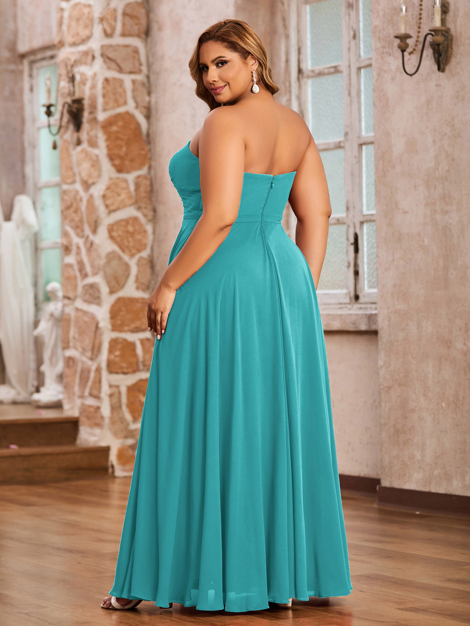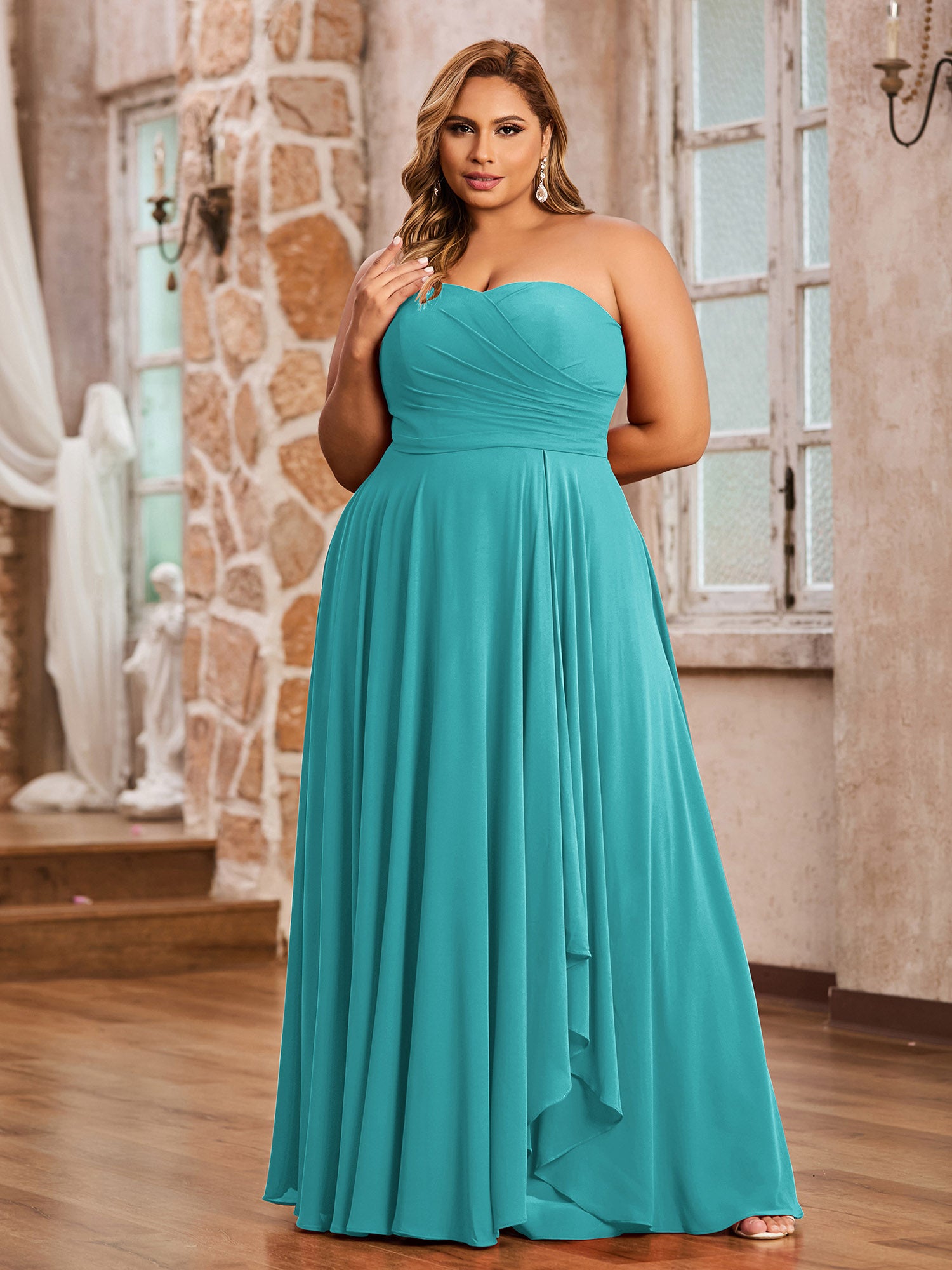 Babaroni YvonneA-line Strapless Chiffon Dresses with Pockets Jade