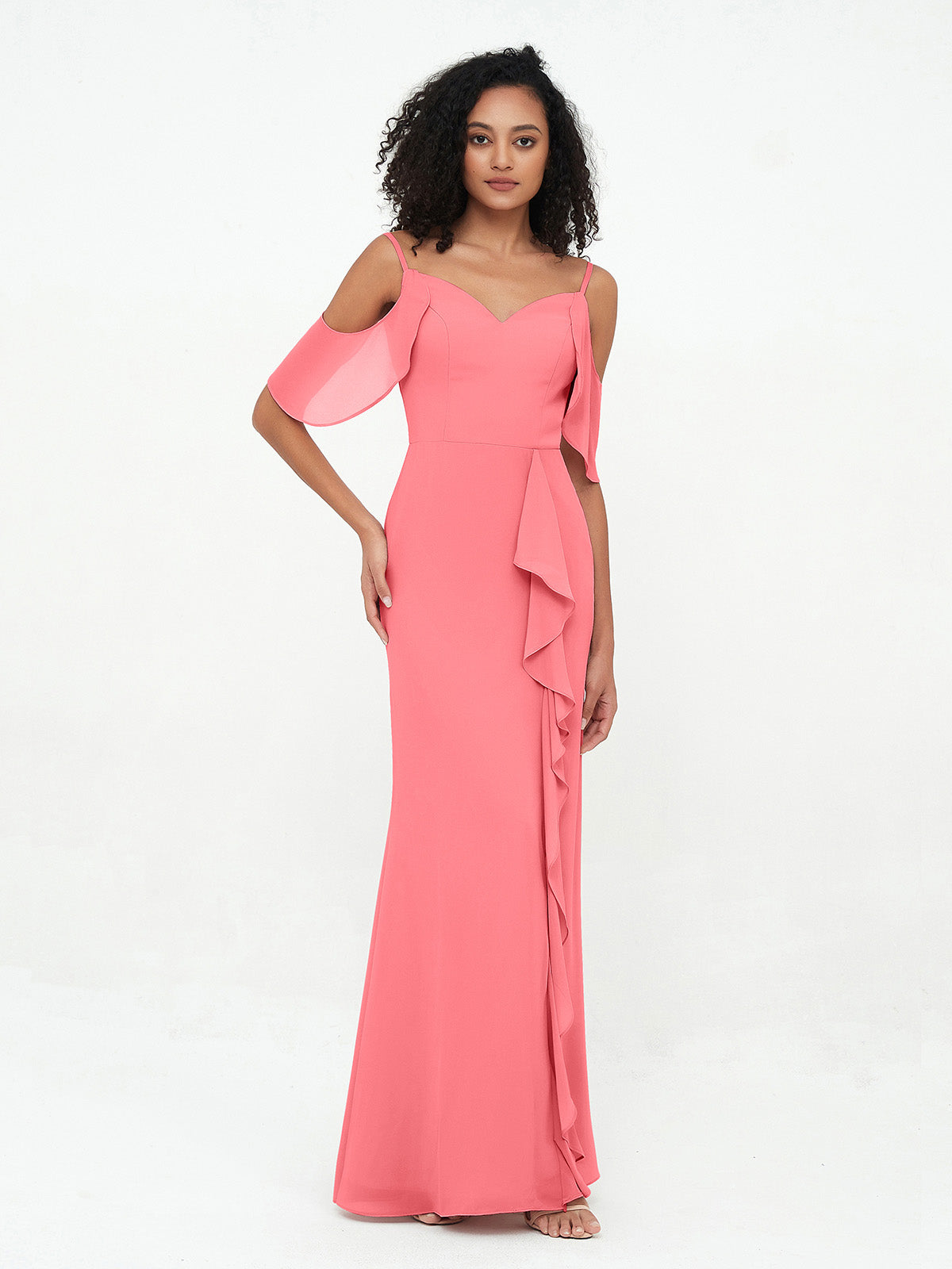 Babaroni JennyFull Length Chiffon Bridesmaid Dresses Watermelon